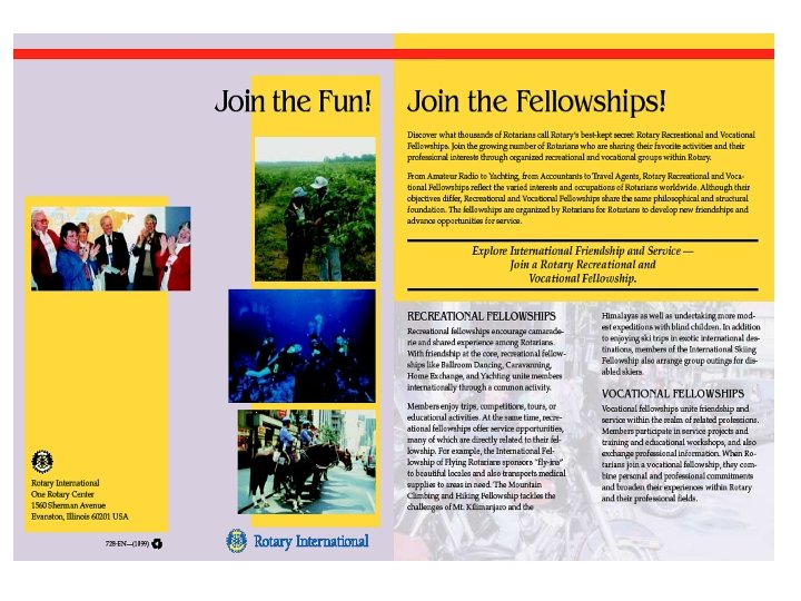 Vocational Service focuses on: • Adherence to and promotion of the highest ethical standards in all occupations, including fair treatment of employers, employees, associates, competitors, and the public. • The recognition of the worthiness of all useful occupations, not just those that are pursued by Rotarians. • The contribution of your vocational talents to solving the problems of society and meeting the needs of the community.