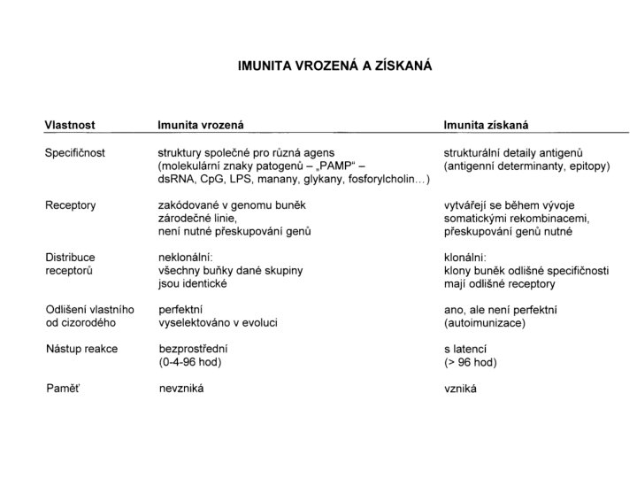 Základní projevy imunitního systému • Obranyschopnost • Autotolerance • Imunitní dohled
