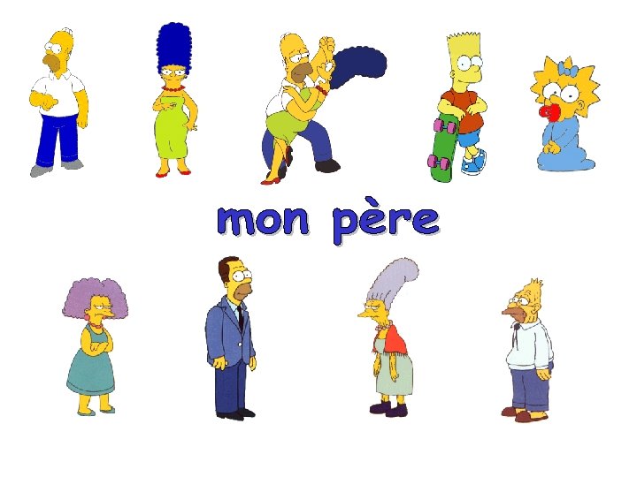 Now try these examples. Fill in the blanks with the correct word for MY (mon/ma/mes) mon père. 1. . . ma mère. 2. . . Now check mes cousins. 3. . . your answers. ma tante. 4. . . mon oncle. 5. . . mes grands-parents. 6. . . ma nièce. 7. . . mon mari. 8. . .