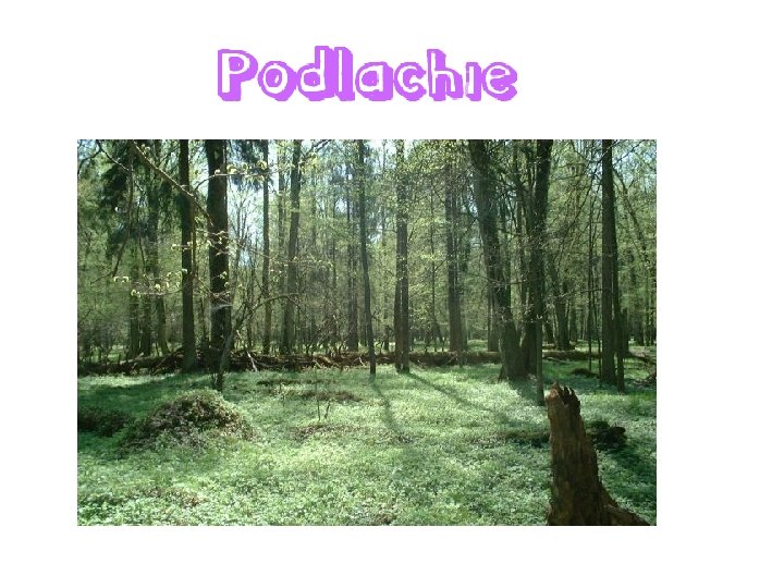 Le chef-lieu de Podlachie est Białystok. Cette région a été appelée poumon vert de la Pologne par l'UNESCO. Le parc national de Białowieża est la seule réserve de bisons en Europe Les réserves naturelles recouvrent 1/3 du territoire.