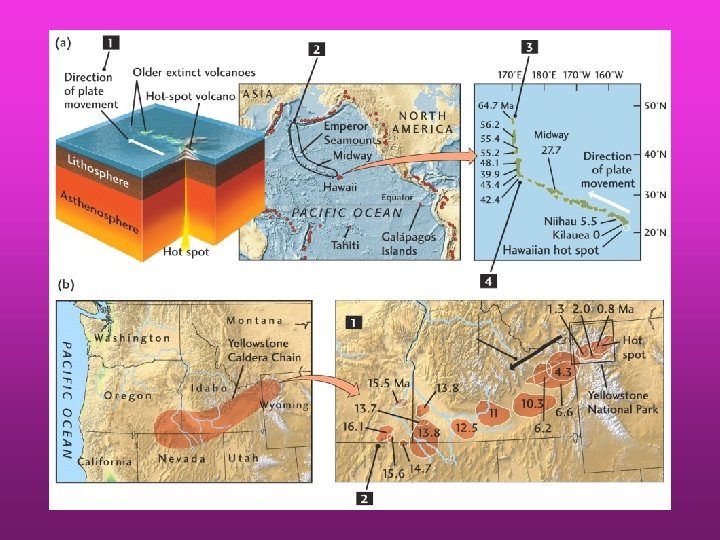 Hot-spot volcanoes are composed of lavas that… 1. Are rich in silica, viscous and explosive 2. Are rich in silica, fluid and explosive 3. Are poor in silica, fluid and not as explosive as convergent margin volcanoes