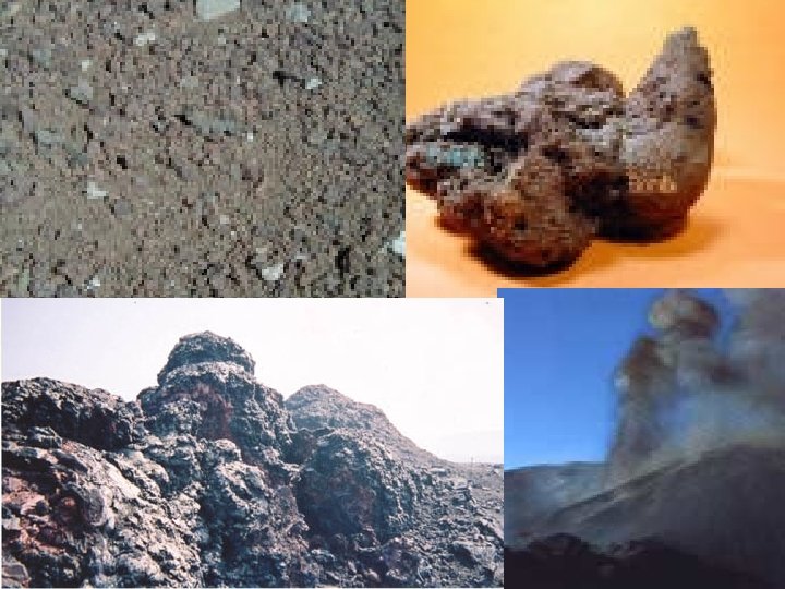 Materials extruded from volcanoes • Lava – pahoehoe (ropy), aa (blocky) and pillow lava (water cooled rolling formation) • Gases – 1 -6% of the mass (water vapor, carbon dioxide, nitrogen, sulfur, chlorine, hydrogen, argon, and methane) • Pyroclastics – ejected fragments