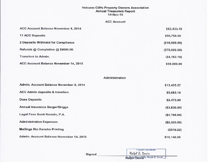 Treasurer’s Report Ralph Davis Annual Dues are Due