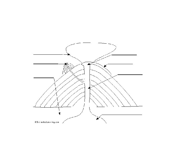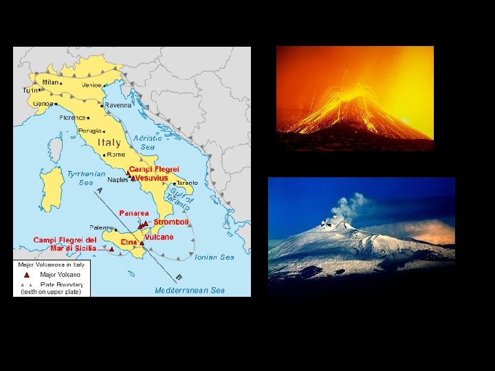 Volcano ~ An opening in the Earth’s crust where hot gas, rocks and magma erupt; they occur along plate boundaries.