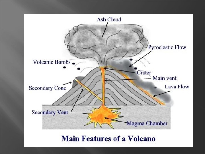 Other dangers of volcanoes Lahar Mud Flows Mixture of water, rock fragments and sediment that flow down the slopes of a volcano Looks like a mass of wet concrete Eruptions may trigger one or more lahars by quickly melting snow/ice or ejecting water from a crater lake Can easily grow to more than 10 times their initial size Typically associated with stratovolcanoes (explosive)