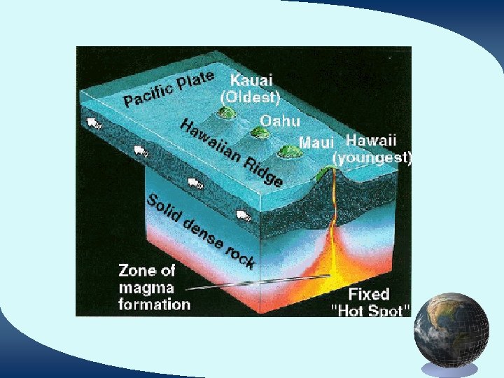 • “Hot Spot” volcanoes form where magma from deep within the mantle melts through the crust like a blow torch • Examples: – Hawaiian Islands – Yellowstone National Park