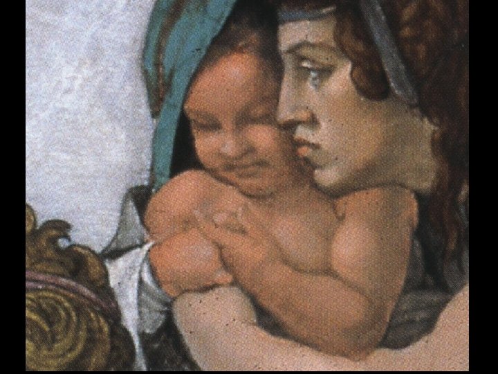 Il suo bambino che si copre un occhio ed è vestito di verde, costituisce un richiamo alla speranza terrena, la speranza che si dirige cioè solo sulle cose terrene, destinata a naufragare con il diluvio.