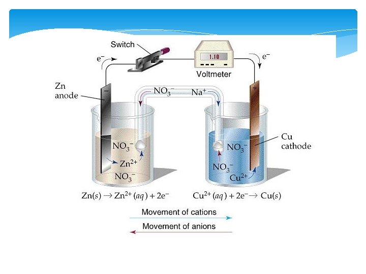 Parts Continued 4. Half-Cell—One half of an electrolytic cell set up 5. Salt-Bridge– device that allows for the movement of electrolyte ions Connects the cells to each other to prevent the build up of charge Without the salt-bride the charges build up in the cells and it stops working YOU MUST ALWAYS HAVE A SALT BRIDGE