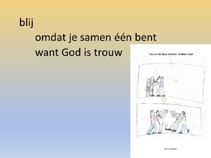 Opwekking 331: a, b, c, d Want nu zegt de zwakke: ik ben sterk, zegt de arme: ik ben rijk, om wat de Here heeft gedaan voor ons.