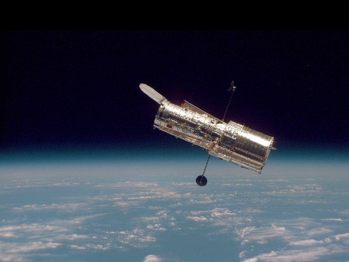 Das Hubble-Weltraum-Teleskop Länge: 13 m Durchmesser: 4 m Masse: 11 Tonnen Energiebedarf: 2, 8 k. W Hauptspiegel: 2, 4 m Sekundärspiegel: 0, 3 m Auflösung: 1/20 ‘‘ Grenzhelligkeiten: 30 m Drei Kameras Diverse Spektrometer Frequenzbereich: Ultraviolett - Infrarot l = 115 - 2500 nm