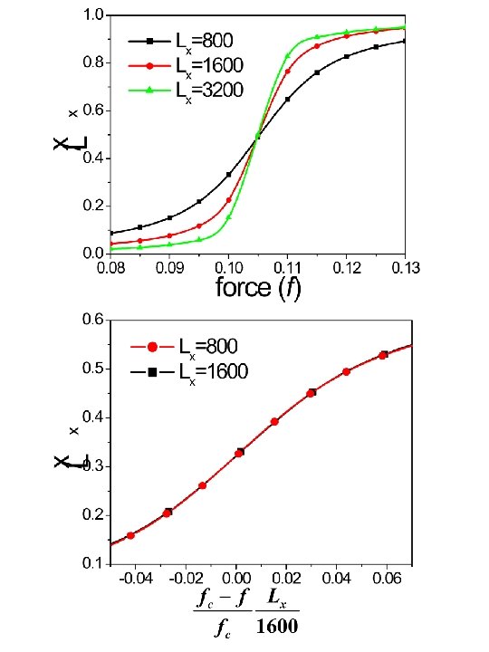 Unzipping from a columnar pin in 2 D with bulk disorder Finite size scaling Extract exponent =1/(1 - ) from numerics Anticipate =1. 5 from bulk part ( =1/3), =2 from columnar pin part ( =1/2). Effectively have unzipping from a disordered pin
