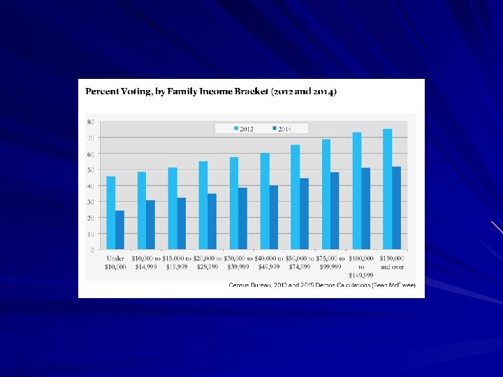 This is all the more disturbing because turnout should have increased… Increasing educational attainment Removal of poll taxes and literacy tests Simplified registration procedures
