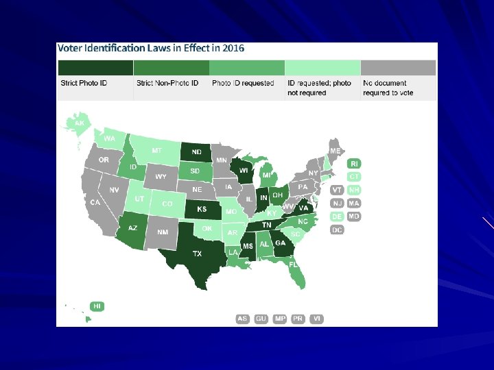State Voting Laws after Shelby County v. Holder The darker the color, the more restrictive the voting laws.