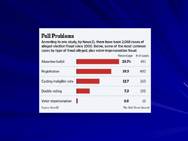 Mobilizing the Vote Institutional context Motor-Voter Compulsory voting Election Day registration Voting by mail Internet voting Motivational strategies Personal canvassing (messenger vs. message) Social pressure Enduring personal traits and orientations Socialization through programs such as Kids Voting USA psychological