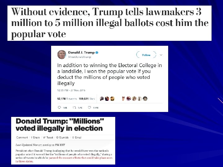 Voter Turnout in U. S. Elections, 1789 -2016 90 Percent of voting eligible population 80 70 60 50 40 30 20 10 0 1789 1801 1813 1825 1837 1849 1861 1873 1885 1897 1909 1921 1933 1945 1957 1969 1981 Year United States Presidential VEP Turnout Rate Source: United States Elections Project. http: //www. electproject. org United States VEP Midterm Turnout Rate 1993 2005 2017