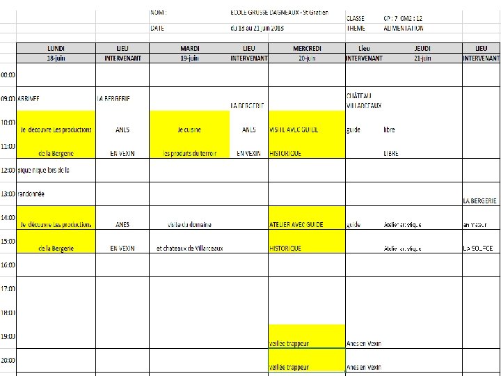 Le départ: lundi 18 juin • Horaire : 8 h , Avenue Terré Prévoir un pique-nique et un goûter dans un sac à dos avec une gourde le sac à dos resservira lors des déplacements •