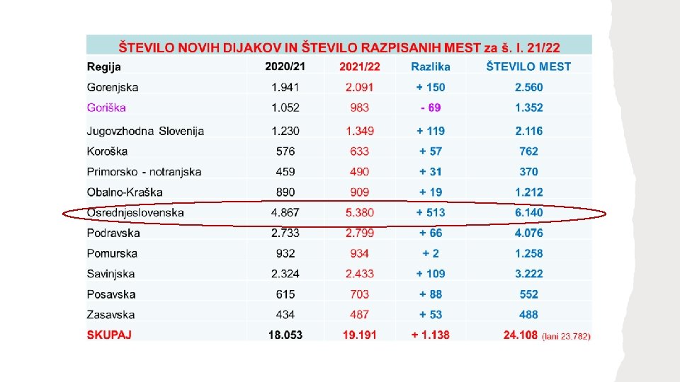 NAMERE GLEDE NA RAVEN IZOBRAŽEVANJA 2021/22 DELEŽ RAZPISANIH MEST ZA VPIS V SREDNJEŠOLSKE PROGRAME ZA ŠOLSKO LETO 2021/2022 1% 8% 0% 36% 14% nižje in srednje poklicno srednje strokovno gimnazija 41% ne nadaljuje v tujino še ne ve Namere se ujemajo z deleži razpisanih mest! Na OŠ Sostro – 15% “še ne vem” Nižje poklicno izobraževanje 30% 2% 40% 28% Srednje poklicno izobraževanje Srednje strokovno izobraževanje Gimnazije