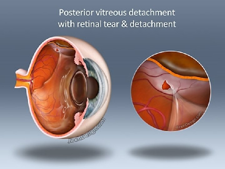 Causes & risk factors PVD u Lattice degeneration, 8% in general population, 40% in eyes with RD u Myopia u Post- Cataract surgery (pseudophakia) u Trauma u