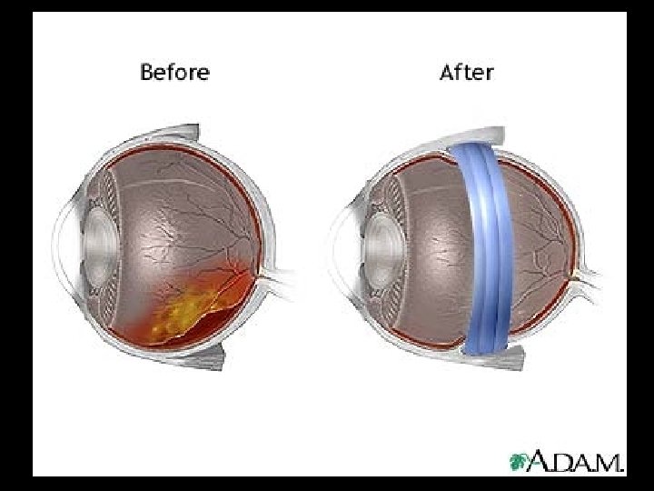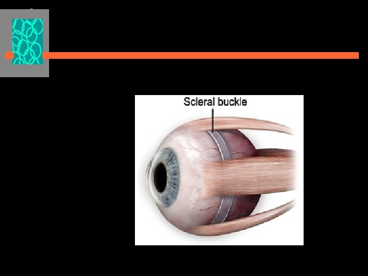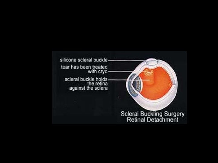 Principles of management u Identify & Seal the break u Drain the SRF (subretinal fluid)-if required u Apply temponade – External temponade/ scleral buckling IDe – Internal temponade A