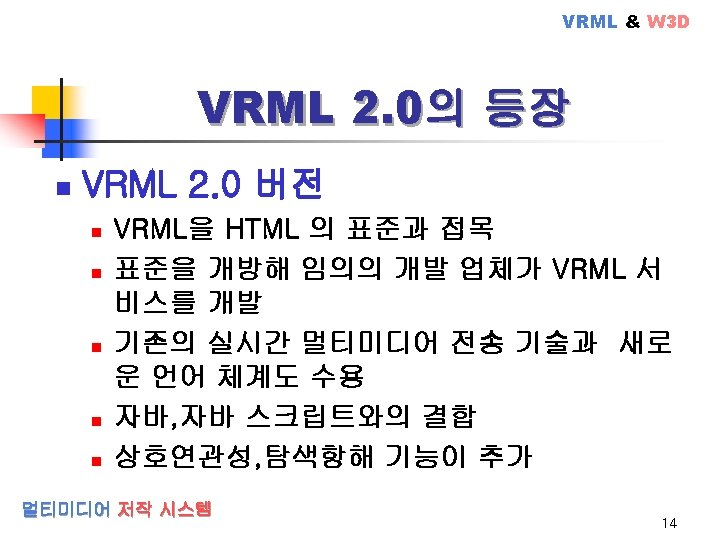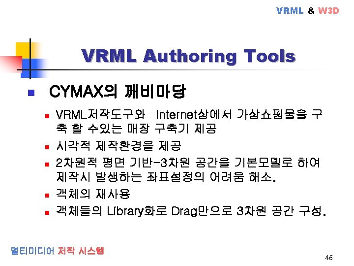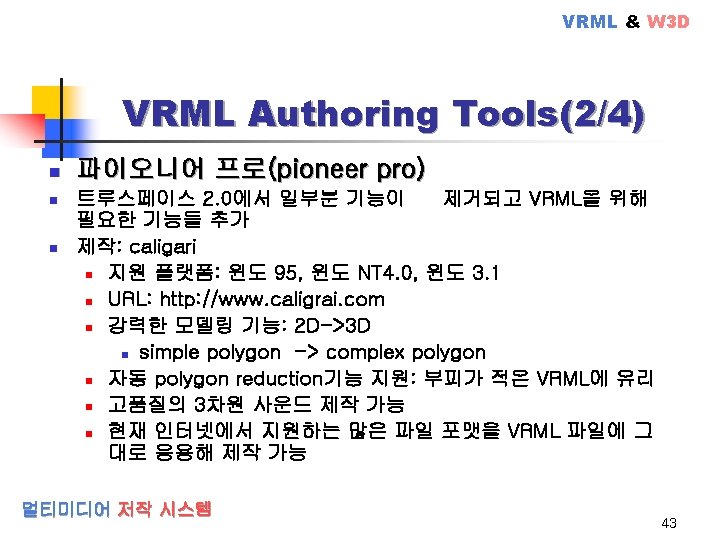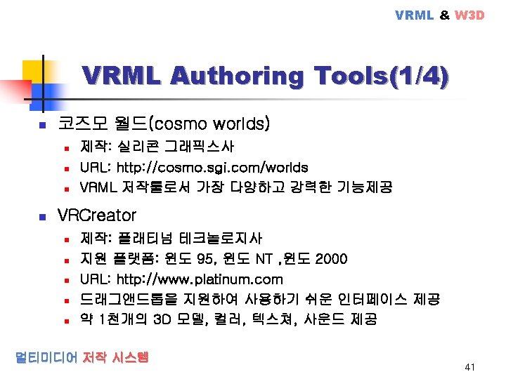 VRML & W 3 D Cosmo Worlds 2. 0 멀티미디어 저작 시스템 42