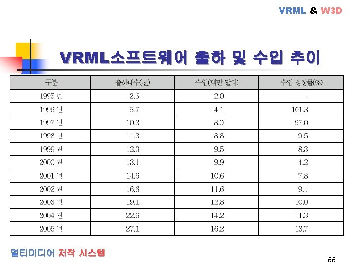 VRML & W 3 D 참고한 사이트와 책 n n n n http: //www. web 3 d. ce. ro/ http: //www. realitybuy. co. kr/index 2. htm http: //www. kobo. net/rbk_3 d/3 dcatalog. htm http: //www. duoback. co. kr/home. htm http: //www. pily. pe. kr/main. html http: //www. csclub. com/club/3 d/3 d_main_rv. asp http: //www. viewpoint. com http: //www. leesunho. pe. kr/ http: //www. web 3 d. pe. kr/ http: //vrweb. co. kr http: //www. cymax. co. kr/information/frame 1. html USING VRML 정보문화사 30대 품목 기술 시장 통합 요약 보고서 멀티미디어 저작 시스템 67