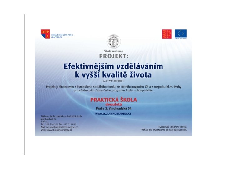 Autorem materiálu a všech jeho částí, není-li uvedeno jinak, je Mgr. Lenka Vlachová Použité zdroje: Vlastní fotografie Použitý software: Microsoft Office Power. Point 2010 (držitel licence ZŠpr a PrŠ, Vinohradská 54, Praha 2) Projekt je financován z Evropského sociálního fondu, ze státního rozpočtu ČR a z rozpočtu hl. m. Prahy prostřednictvím Operačního programu Praha – Adaptabilita.