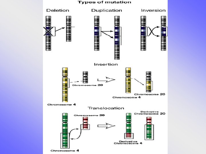 Strukturní chromosomové aberace • chybění či přebývání části genetického materiálu kteréhokoli chromosomu, atypická struktura – vedle sebe se dostanou části genetického materiálu, které tam za normálních okolností nepatří – poziční efekt • částečné-parciální delece • parciální trisomie • inverze, inzerce, duplikace….
