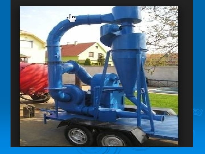 Sistem pritisak - vakuum (sl. 2. 3) predstavlja kombinaciju obe metode. Vakuum se koristi za povlačenje materijala u transporter, pomeranjem na kratkom rastojanju od ciklon separatora, izdvojeni vazduh iz ciklona separatora filtrira se, a nakon toga uz pomoć duvaljke vrši se potisno dejstvo materijala kroz cevovod. Sl. 2. 3. Transportni sistem: vakuum-pritisak