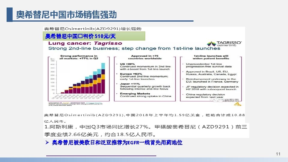 奥希替尼vs埃克替尼 药物名称 奥希替尼 埃克替尼-一代 艾维替尼-三代 机理 T 790 M抑制剂(一线 和二线) EGFRM+(一线) T 790抑制剂(一线 和二线) EGFR一线无进展期 (PFS,月) 19. 3 11. 6 ORR 80 %(76%)(QD) 71 41. 7% (BID) 艾维替尼: 2016年ESCO年会公布的临床I/II期(NCT 02274337)研究数据中, 结果显示ORR和DCR分别为 41. 7%和75. 0%。在≥ 350 mg,两次服药。 https: //mp. weixin. qq. com/s/2 IKx 8 f. Kb. F 30 etnb. CBm. Bm 2 w 奥希替尼:At data cutoff (November 1, 2016), median follow-up was 19. 1 months. Overall ORR was 67% (95% CI, 47% to 83%) in the 80 -mg group, 87% (95% CI, 69% to 96%) in the 160 -mg group, and 77% (95% CI, 64% to 87%) across doses. Median PFS time was 22. 1 months (95% CI, 13. 7 to 30. 2 months) in the 80 -mg group, 19. 3 months (95% CI, 13. 7 to 26. 0 months) in the 160 -mg group, https: //ascopubs. org/doi/full/10. 1200/JCO. 2017. 74. 7576 哆希替尼是奥希替尼的�代衍生物,�床前�效、毒理两者相当 10