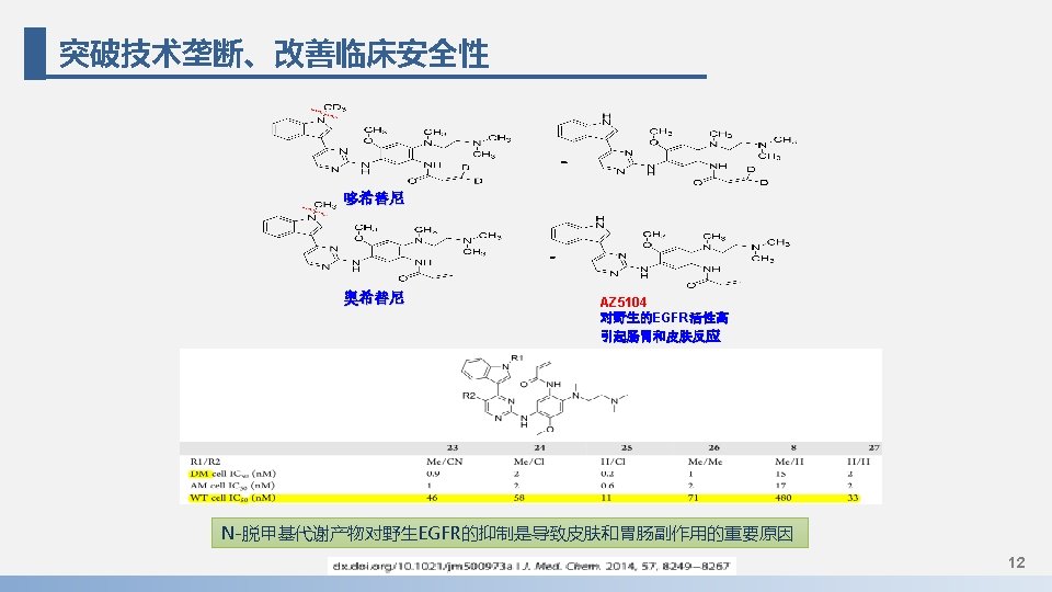显著减少N-脱甲基代谢产物的生成 10000 Mean PO(Male) Mean. . . Mean Mean Mean PO(Femal PO(Femal Mean PO(Male) Mean PO(Femal PO(Male) 2, 000 e)4, 000 e)6, 000 e) 8, 000 e)e)1, 000 PO(Male) 2, 000 8, 000 PO(Femal e)Mean 0, 500 1, 000 197, 7 195, 0 193, 0 191, 7 138, 5 0, 500 108, 10 106, 27 89, 57 PO(Male) 77, 50 e) 0, 250 67, 9 58, 10 29, 70 0, 250 15, 98, 94 1000 10 1 0 4 8 12 16 20 PO(Femal e) Mean 24, 000 PO(Male) 54, 2 24, 000 4, 31 24 Time (h) Concentration (ng/m. L) 10000 Mean Plasma Concentration of metabolite 1000 AZ 5104 -D 2 after PO Dosing of 90 -1408 100 Mean PO(Male) Mean PO(Female) Mean 10 Mean Mean PO(Femal Mean PO(Femal 1 PO(Femal PO(Male) PO(Femal PO(Male) e) 8, 00 e) 6, 00 PO(Male) e) 24, 00 e)4, 00 e) 2, 00 0, 1 6, 00 8, 00 e)1, 00 2, 00 0, 813 0, 600 0, 483 0, 458 0, 287 0, 2557 0, 2190 0, 2050 0, 01 0, 156 0, 1353 0, 0714 0, 001 0 4 8 12 16 20 24 Time (h) Mean Plasma Concentration of Mean PO(Male) Mean AZD 9291(Mesylate) after PO Dosing of Mean 1000 Mean. . . Mean PO(Femal Mean. PO(Male) AZD 9291(Mesylate) PO(Femal Mean PO(Male) PO(Femal PO(Male) 100 e) 6, 000 e) 8, 000 e) 4, 000 e)1, 000 2, 000 PO(Male) e) 6, 000 PO(Femal Mean PO(Femal 8, 000 PO(Male) 4, 000 e) 0, 500 2, 000 Mean 200, 3 187, 7 183, 0 167, 7 1, 000 119, 3 106, 43 e) 24, 000 PO(Male) 10 e)0, 500 0, 250 76, 93 72, 07 65, 7 55, 30 PO(Male) 36, 40 24, 0 0, 250 18, 7 17, 32 24, 000 1 5, 05 0 4 8 12 16 20 24 2, 79 Time (h) 10000 Mean Plasma Concentration of metabolite 1000 AZ 5104 after Dosing of AZD 9291(Mesylate) Mean PO(Male) Mean Mean 100 Mean PO(Male) Mean PO(Male) PO(Femal Mean. . . Mean PO(Male) PO(Femal Mean 10 PO(Femal Mean PO(Femal PO(Male) PO(Femal 8, 000 PO(Femal 6, 000 4, 000 e) 8, 000 Mean 2, 000 e) 6, 000 PO(Male) 1 e) 4, 000 PO(Femal e) 2, 000 1, 000 e) 24, 000 9, 2233 e) 1, 000 7, 3700 7, 3400 5, 787 PO(Male) 4, 6167 4, 537 0, 500 24, 000 2, 843 e) 1, 9053 0, 500 0, 1 1, 920 1, 897 0, 945 0, 250 0, 5490 0, 5337 0, 320 0, 01 0, 0749 0, 001 0 4 8 12 16 20 24 Time (h) Concentration (ng/m. L) Chart Title Concentration (ng/m. L) 10000 Male/female Male/Female 90 -1406 AZ 5104 -D AZD 9291 AZ 5104 Cmax (ng/m. L) 115/208 0. 256/0. 813 106/207 10. 8/5. 79 T 1/2 (h) 3. 87/6. 85 AUC 0 -last (ng·h/m. L) 1100/3105 3. 40/5. 59 2. 22/13. 7 907/2592 94. 4/79. 6 Ø N-脱甲基产物AZ 5104 -D较AZ 5104雄鼠少 98%,雌鼠少 83%。可望减少皮疹和胃肠道副作用 Ø 生物利用度提高了21. 2% (male), 19. 8% 14