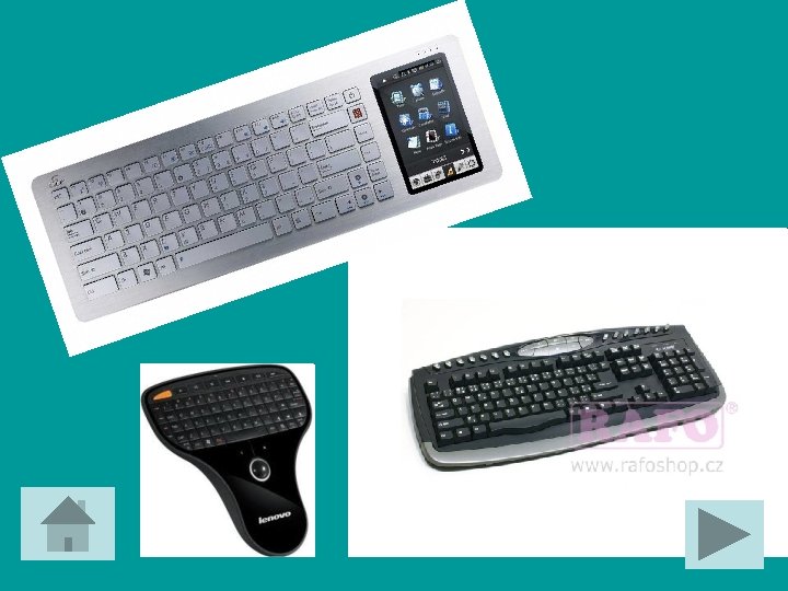 Vstupní a výstupní zařízení pro počítače Vstupní zařízení: Myš Klávesnice: - multimediální - ergonomické - gumové - virtuální Skenery - stolní - ruční - 3 D Webkamera Mikrofon Výstupní zařízení: Monitory Tiskárny Dataprojektory Reproduktory Sluchátka
