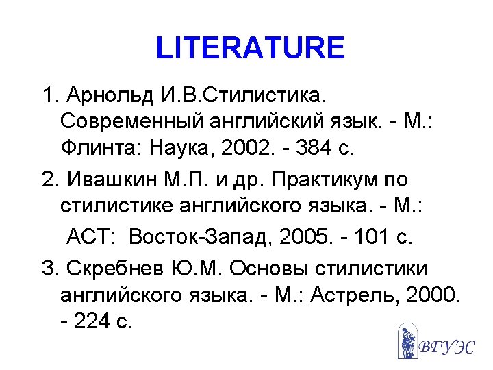 LITERATURE (доп. прогр. ) 1. Lecture 1 in the blue file in the Resource Center (copy it and study carefully). 2. Kukharenko V. A. Seminars in Style. Make notes of pp. 5 -10.