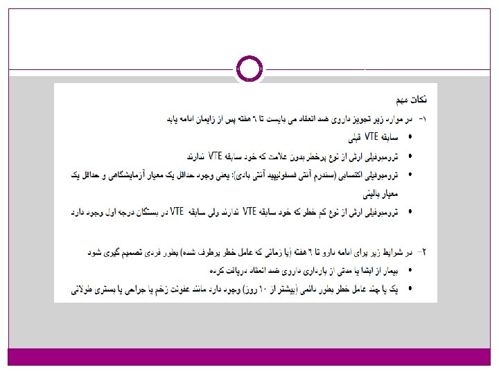 Post-partum management �Vitamin K antagonists may be started on the second day after delivery and continued for at least 3 months or for 6 months if pulmonary embolism occurred late in pregnancy. �The INR should be between 2 and 3 and needs regular monitoring, ideally once every 1– 2 weeks. Vitamin K antagonists do not enter the breast milk in active forms and are safe for nursing mothers.