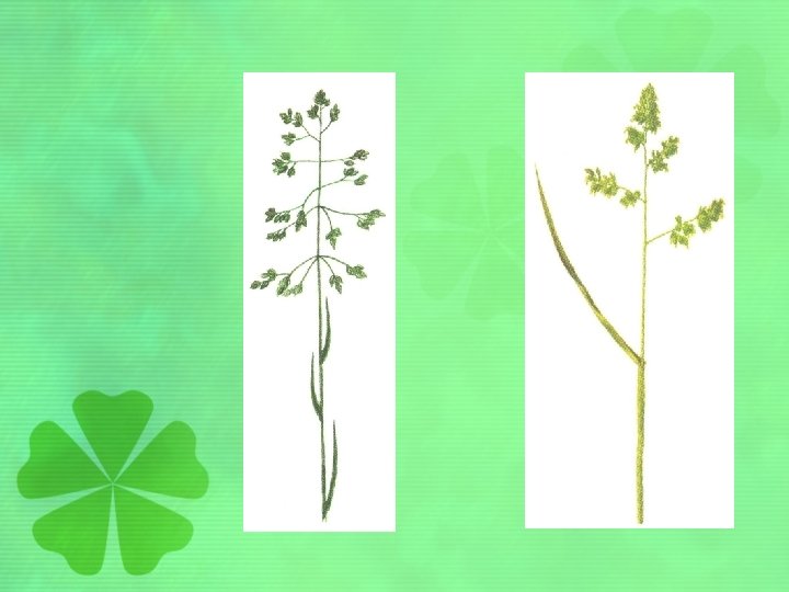 Trávy • podobná stavba jako obiloviny • dutý stonek s kolénky, úzké čárkované listy, nenápadné květy sdružené v květenství