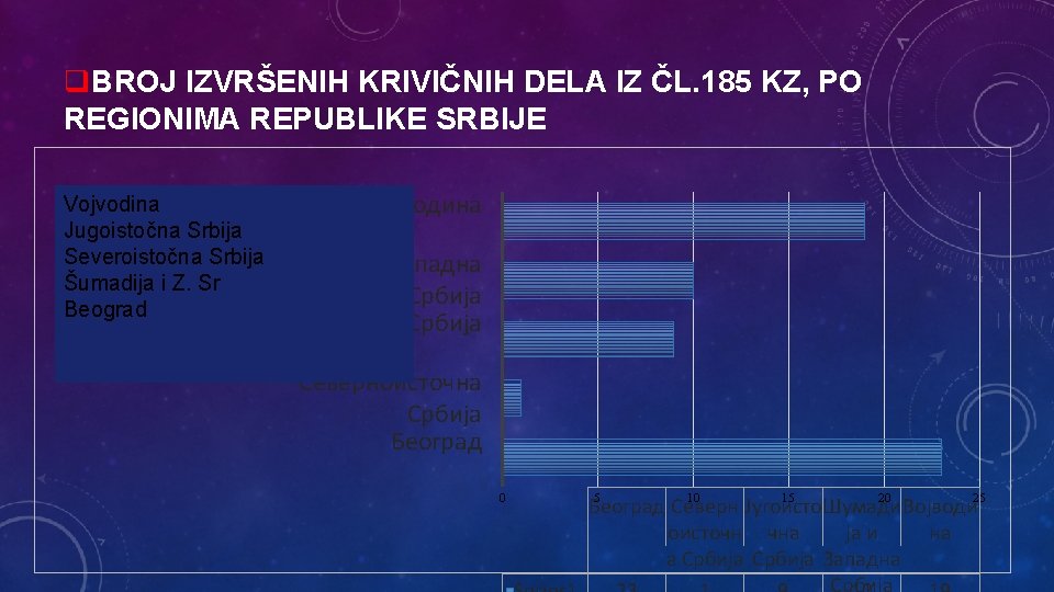 q. METOD • Sve analize izvedene su na podacima Višeg javnog tužilaštva u Beogradu, koji su obuhvatali lica koja su u periodu 2013. do 2015. godine, izvršila krivično delo iz čl. 185 KZ.