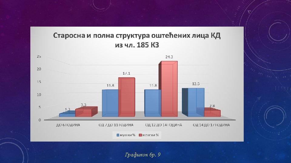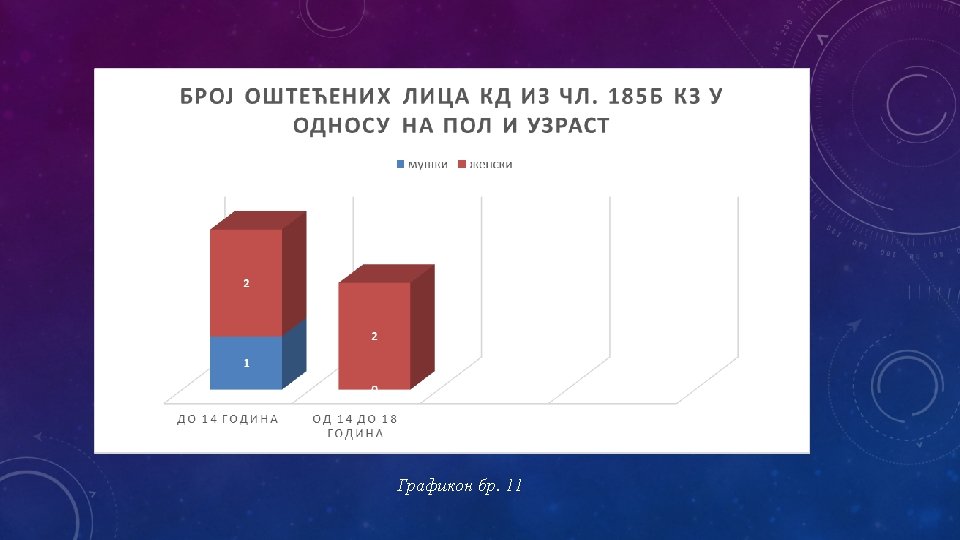 q. ZAKLJUČCI q. U pogledu ostalih socio-demografskih modaliteta, rezultati istraživanja pokazuju da su izvršioci krivičnog dela iz čl. 185 KZ: q lica sa završenom srednjom školom, q lica koja su u istom procentu zaposleni i nezaposleni, q neoženjeni, q neosuđivani, q gravitiraju iz gradskih sredina.