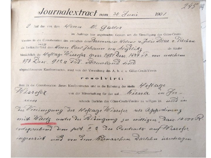 Kinnistamisotsuse väljavõte, välja antud Karl Johann (Karl Julian) von Seidlitzile, kes sai mõisa päranduseks isalt 2. juuni 1898 Eesti Ajalooarhiiv