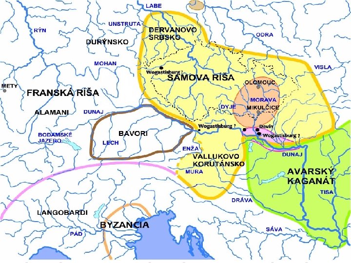Samová (623 – 659) Samo sa usadil natrvalo na Slovensku a zriadil s našimi slovanskými predkami prvú nadkmeňovú spoločenskú organizáciu vojensko - obrannej povahy, ktorú postupne rozvinul do vtedajšej formy štátneho útvaru. Tento štát vošiel do dejín ako Samova ríša, alebo Samovo kráľovstvo. Centrom toho štátneho útvaru bolo územie okolo Bratislavy a Nitry.