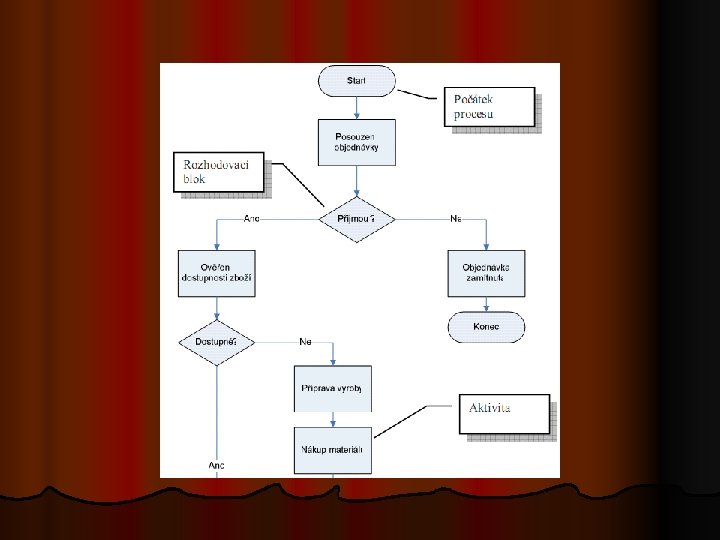 Literatura l Business Process Modeling Notation (BPMN) Information: Introduction to BPMN: http: //www. bpmn. org/ l KUČEROVÁ, Helena. Projektování informačních systémů. Sylaby ke kurzu. Praha : Vyšší odborná škola informačních služeb, 2007. 116 s. http: //info. sks. cz/users/ku/DOKUMENTY/pri_syl. pdf l Vondrák: Metody byznys modelování: l David Straker. Syque. com: l Flowcharting: vondrak. cs. vsb. cz/download/Metody_byznys_modelovani. pdf http: //syque. com/quality_tools/toolbook/Flowchart/flowchart. htm http: //www. hci. com. au/hcisite 2/toolkit/flowchar. htm