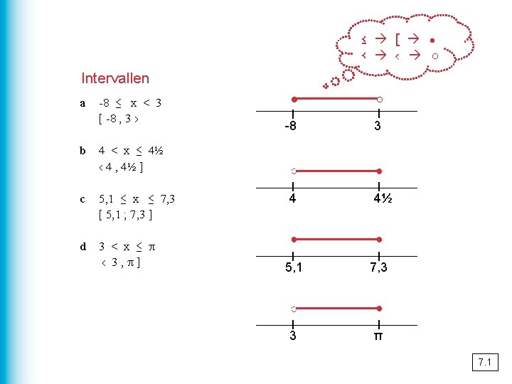 Oneindige intervallen a x ≤ 4½ ● l 4½ ‹ , 4½ ] b x > -8 ‹ -8 , › ○ l -8 7. 1
