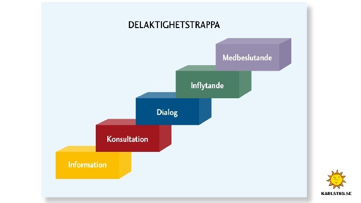 Några framgångsfaktorer • • • Tydlighet och ärlighet Politisk vilja och engagemang Reellt påverkansutrymme Tydligt syfte och mätbara mål Ta fram kommunikationsplan Ta fram tid- och aktivitetsplan Inkluderande process Återkoppla Utvärdering