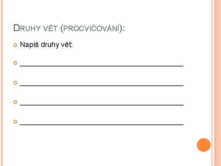 DRUHY VĚT (PROCVIČOVÁNÍ): Napiš druhy vět: OZNAMOVACÍ TÁZACÍ ROZKAZOVACÍ PŘACÍ