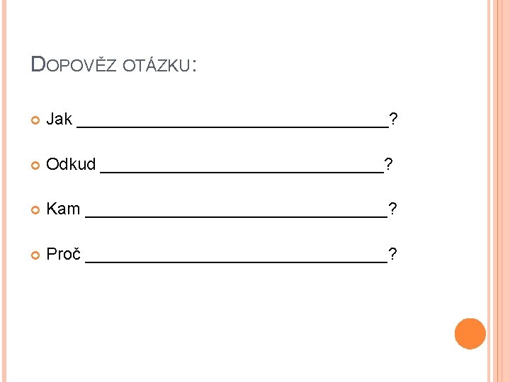 DOPOVĚZ OTÁZKU: Jak často chodíš na ryby? Odkud jsi přijel? Kam půjdeš? Proč přišla pozdě?
