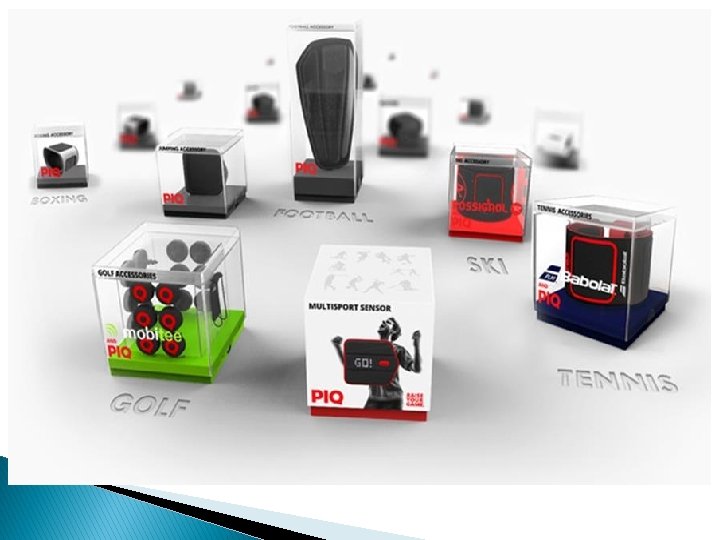 PIQ � Univerzální sportovní senzor � Senzory: 2 x akcelerometr, gyroskop. Magnetometr, tlakový senzor, � Výdrž baterie 8 hodin, hmotnost 10 g � Použití pro sporty: Tenis (Babolat), Lyžování (Rosignol), Golf (Mobitee), Kiteboarding (North), Fotball, Rugby � Cena: 4 100, 4 995 , - tenis 7 595, - golf
