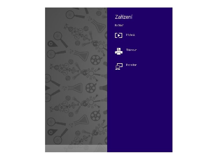 Základní orientace v operačním systému • • Zařízení Nastavení, změna nastavení počítače Hledat sdílení