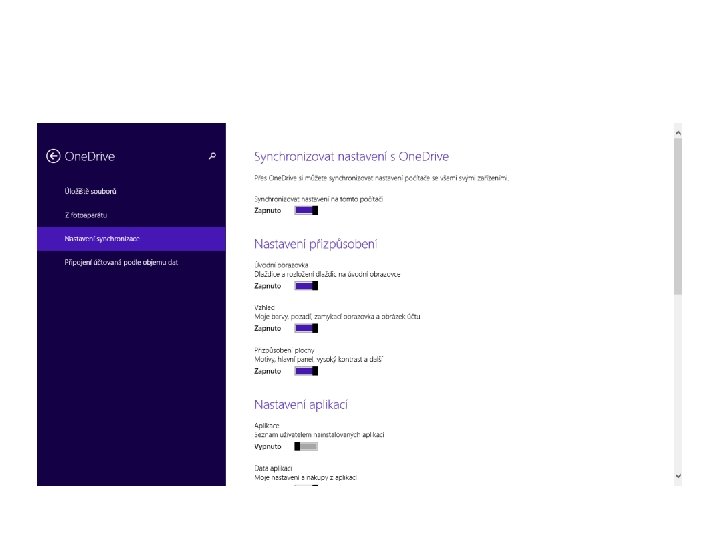 Nákup aplikace, sdílení, práce s aplikacemi • • • Windows store Stažení a instalace aplikací Automatická aktualizace aplikací Synchronizace aplikací mezi počítači One drive