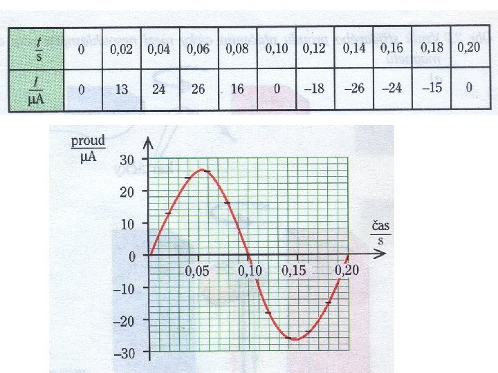 Graf časového průběhu střídavého proudu: • sinusoida (stejně tak i střídavé napětí)