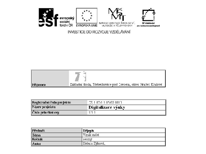 Vznik mst Osnova hodiny Osnova zpisu 1 Dlen