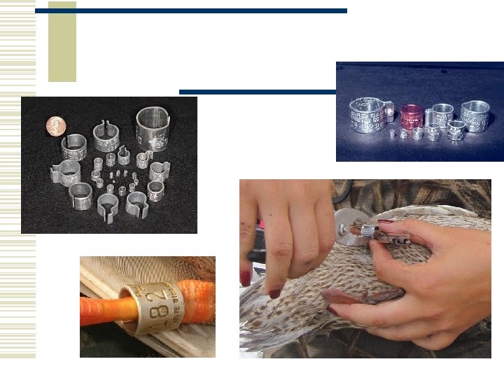 What are some examples of wildlife conservation management? w Bird banding is used to provide information on migration routes and the numbers of birds that survive each year. n n Banding is placing a band around the leg of a bird to identify it for study. Banded birds are eventually shot by hunters or found dead. The information o the band helps identify the bird and help set up annual hunting regulations to ensure bird populations are maintained.