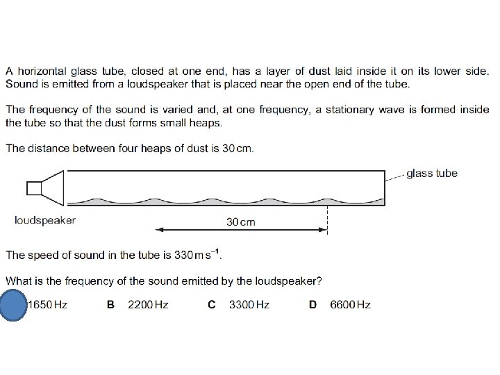 T) Make a Kundt's tube Kundt's demonstration, first described in 1866, gives a visual record of the nodes and antinodes of a standing wave set up in a tube. It can be used to determine the speed of sound within the tube, but here you are only asked to show standing wave behaviour. Mr Anderson & Mr Tonks tried to make this but failed… students turn? See https: //tap. iop. org/vibration/superpostion/324/file_46791. doc And video - https: //www. youtube. com/watch? v=Nbhh 0 B 2 aja. Q Or without a speaker see http: //hyperphysics. phyastr. gsu. edu/hbase/Class/Ph. Sci. Lab/kundtapp 2. html Wave & Sound unit - Enquiry Investigation lab info: Option T